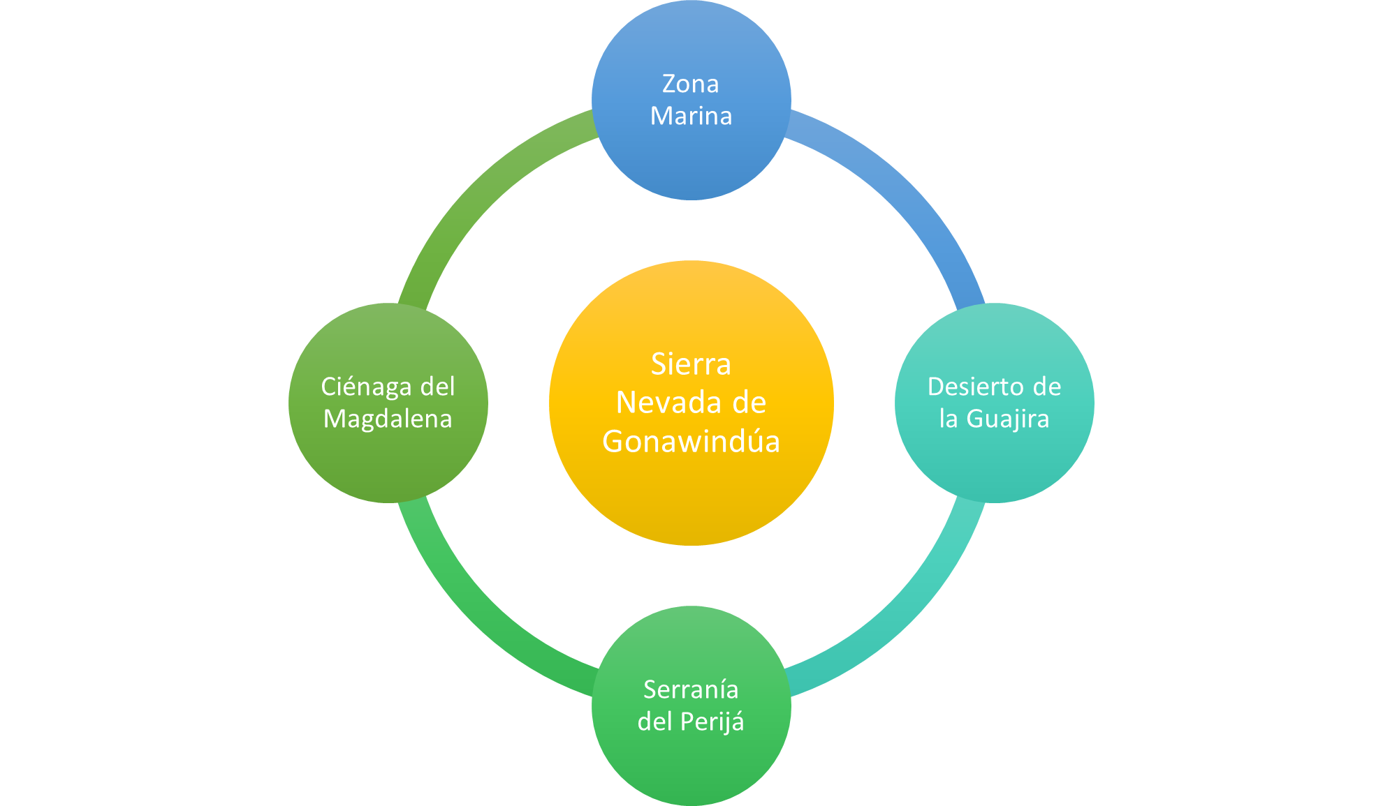 El sentido y el hacer propio de cuido, protección, regeneración y preservación ambiental de los pueblos de la Sierra Nevada de Gonawindúa debe concebirse desde los principios de equilibrio, conectividad e integralidad con otros componentes que, aunque se encuentren afuera están directamente relacionados con la Sierra Nevada de Gonawindúa, tales como: